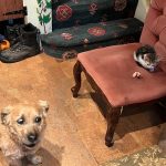 The process was not speeded up by the presence of a very noisily purring kitten on my knee, which limited my typing to the single-handed variety, because every time I stopped stroking it, it bit me. Poor Roger Poopy is very sad about the kitten. Not only does it not want him to love it at all, he can’t see why I might be quite happy to have the tiny kitten on my knee but not a large, wet, smelly dog, and he has been sitting beside me with the mournful expression of a faithful old friend who has suffered a shocking, and completely unexpected, betrayal.