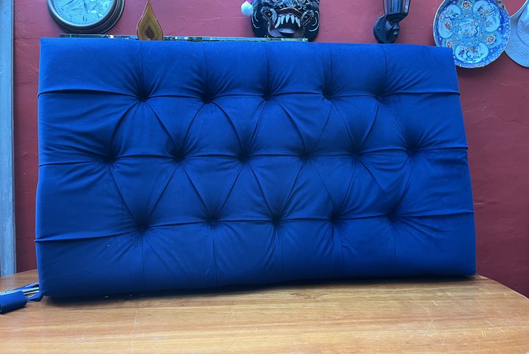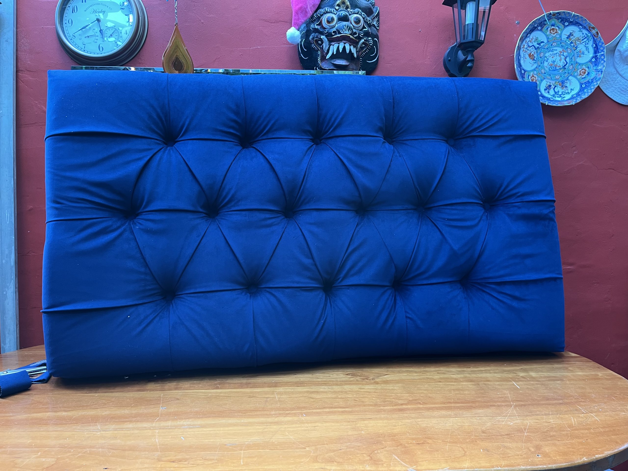 I just wanted to show you, before I sign off, our very wonderful, wonderful finished bed head, completed, to our immense satisfaction, just before we set out to work this evening
