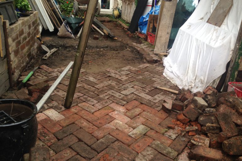 Mark filled in our stolen hole with brick paving, which you can see in the picture. It is looking splendid.