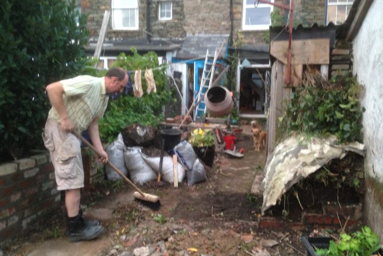 I knocked cement off bricks and he built another wall. Then I dug out the back of a flower bed and installed some plastic to stop the tree roots invading in to next door’s yard. I filled a plant pot and shifted soil about in buckets, and then we went inside to get dinner ready.